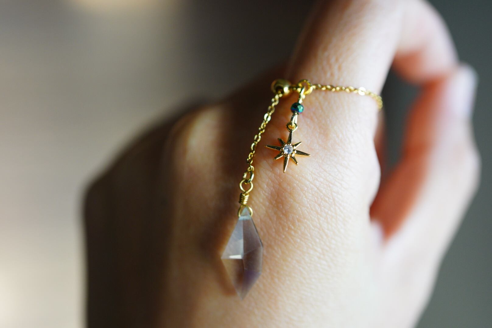 手もとで揺れるチャームがかわいらしいリングです。