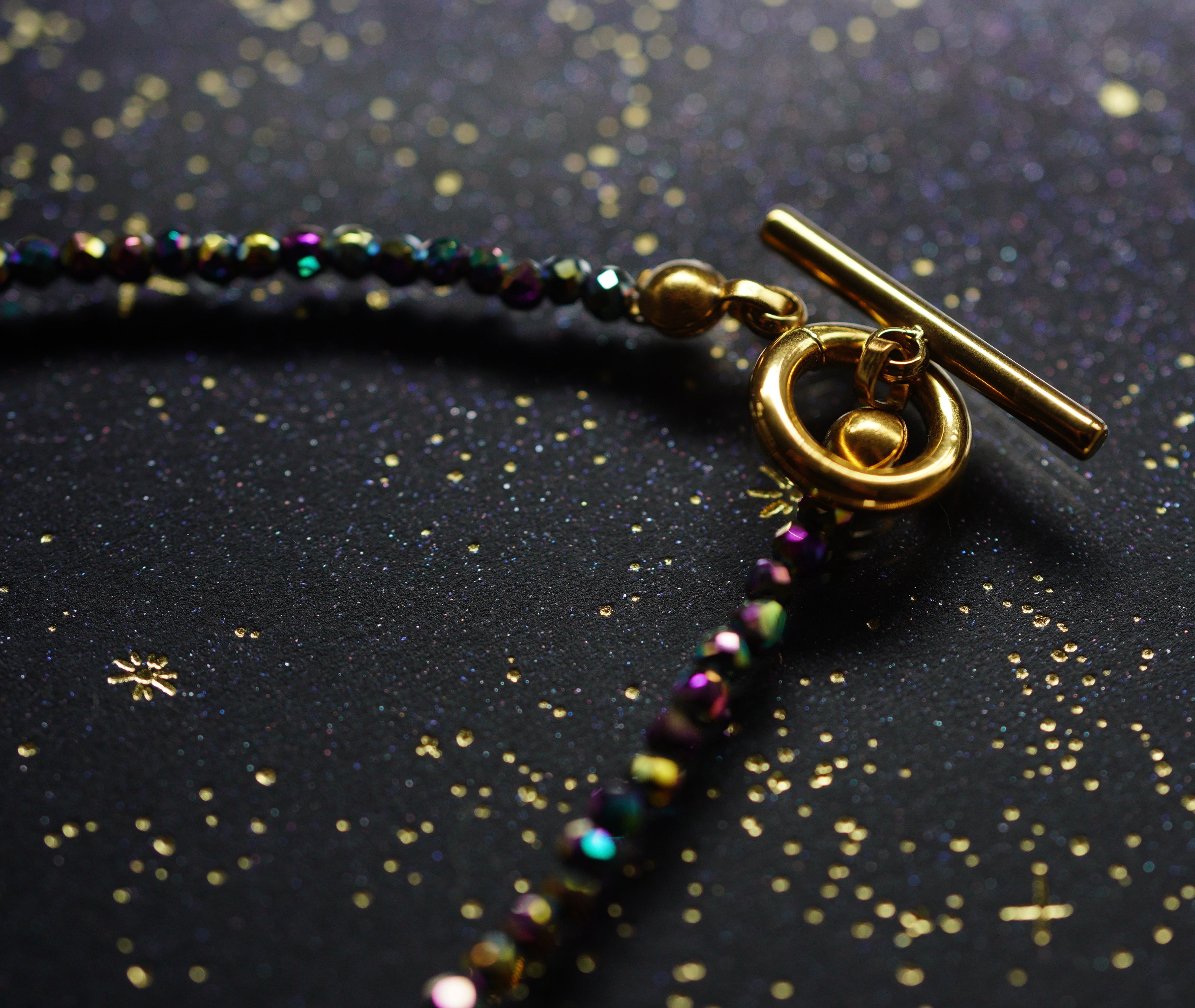 オーロラ加工のヘマタイトを使用した人気のブレスレットです。 シンプルながらにも、美しいきらめきで手元で揺れるたびに存在が強調されます。 金具:サージカルステンレス (ゴールドカラー) 石:ヘマタイト オーロラ加工 サイズ:16~18㎝