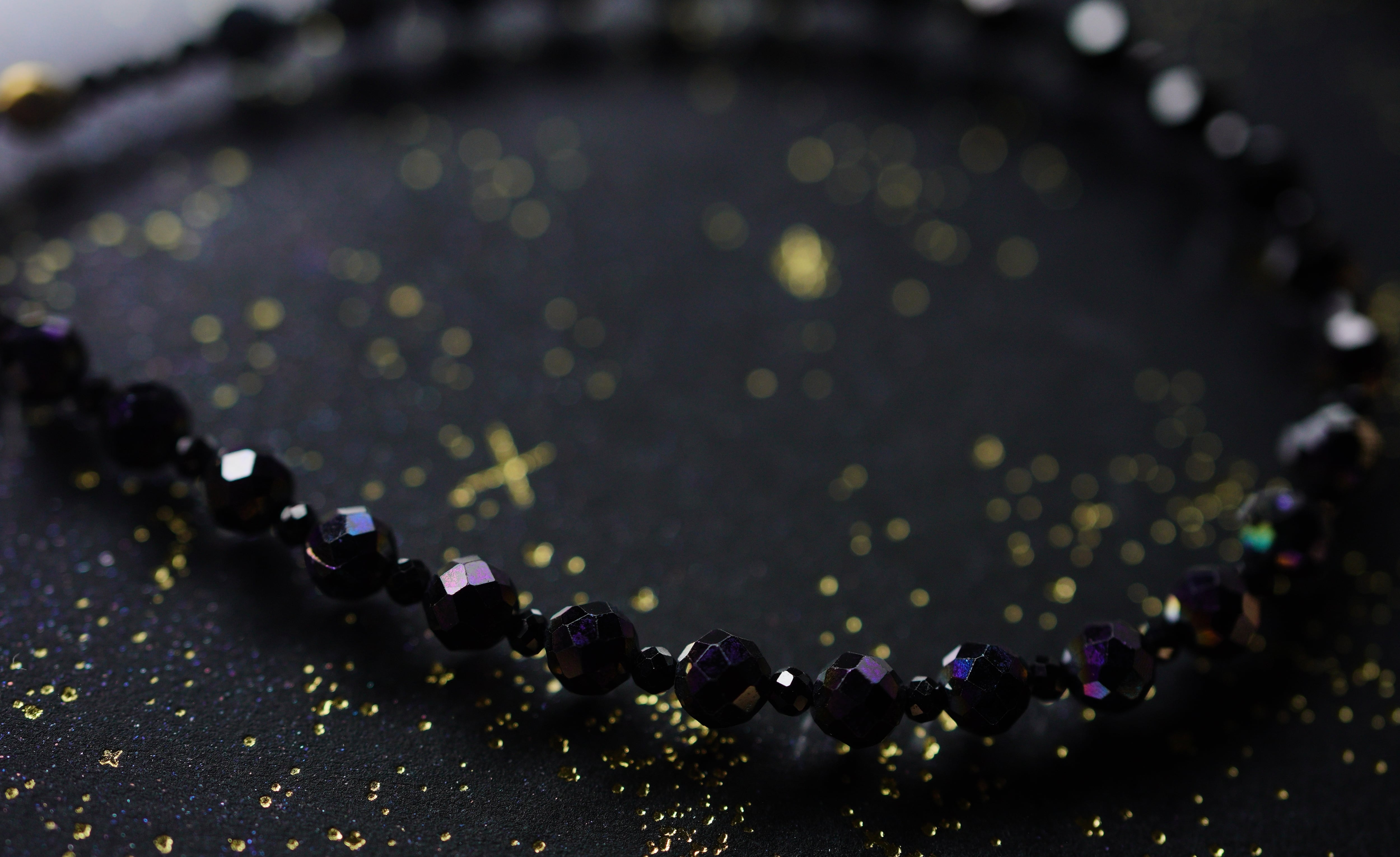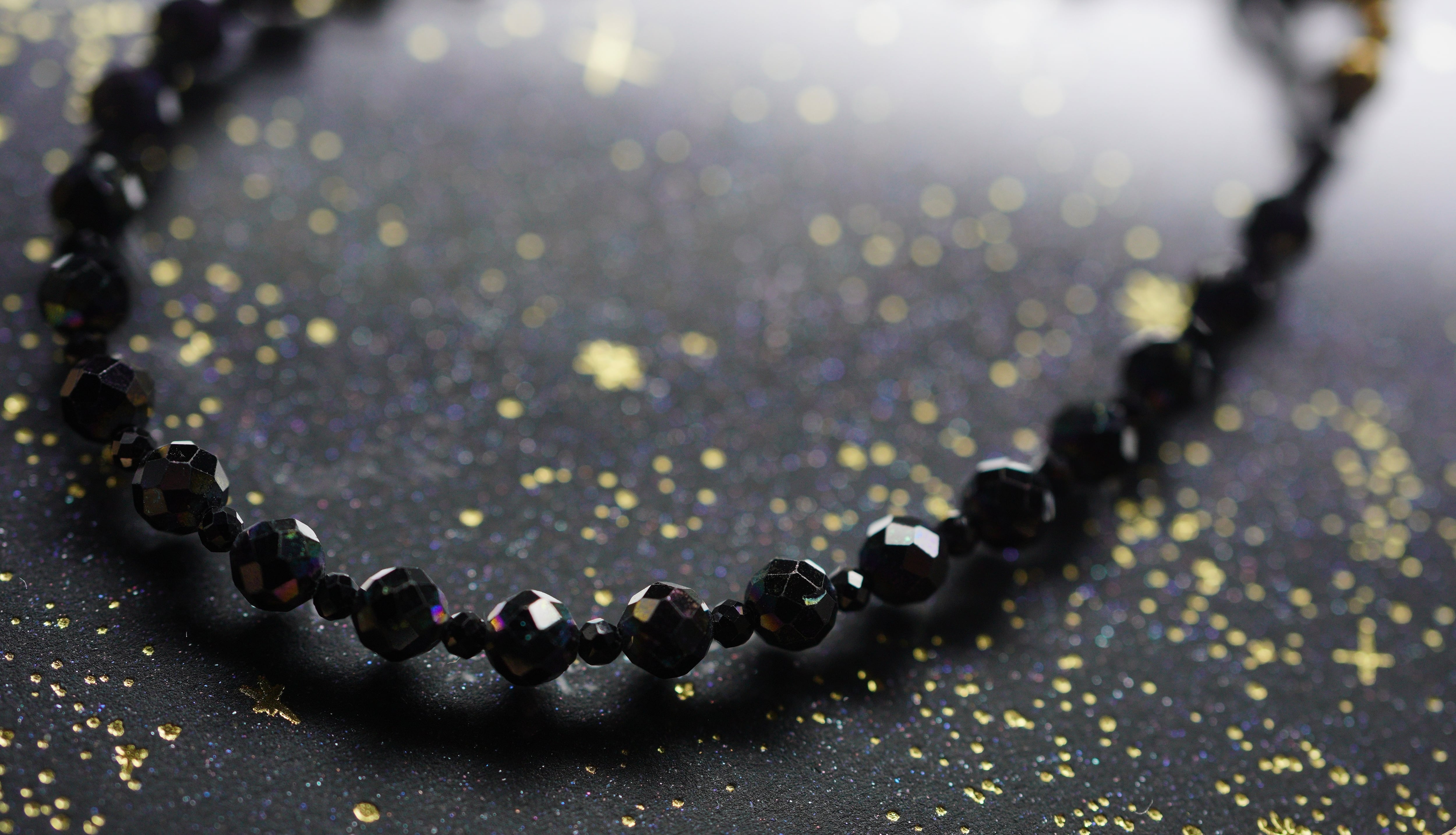 オーロラ加工のスピネルとカットが入った小粒のブラックスピネルを使用したブレスレットです。ブラックとオーロラのグラデーションが美しい作品です。