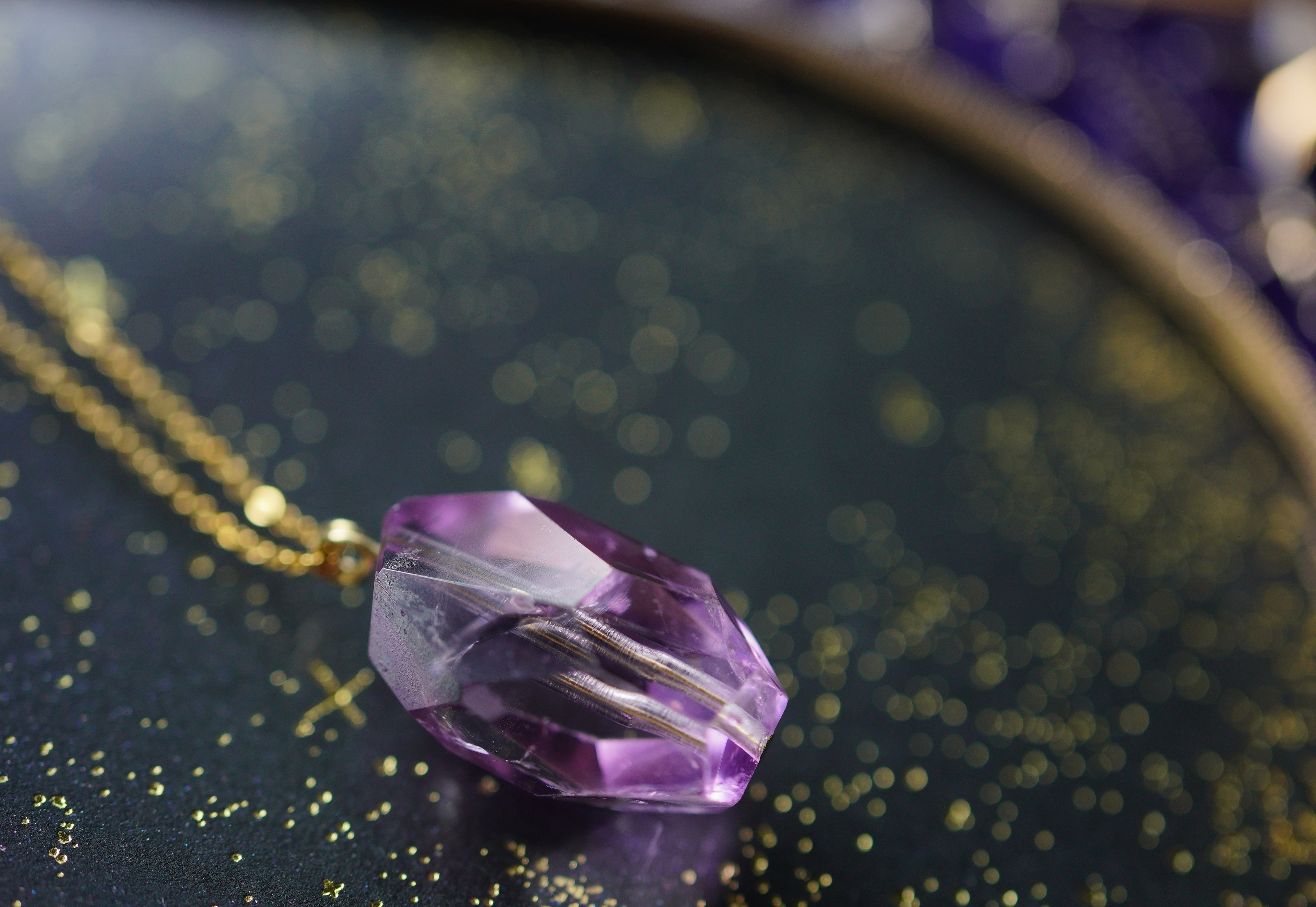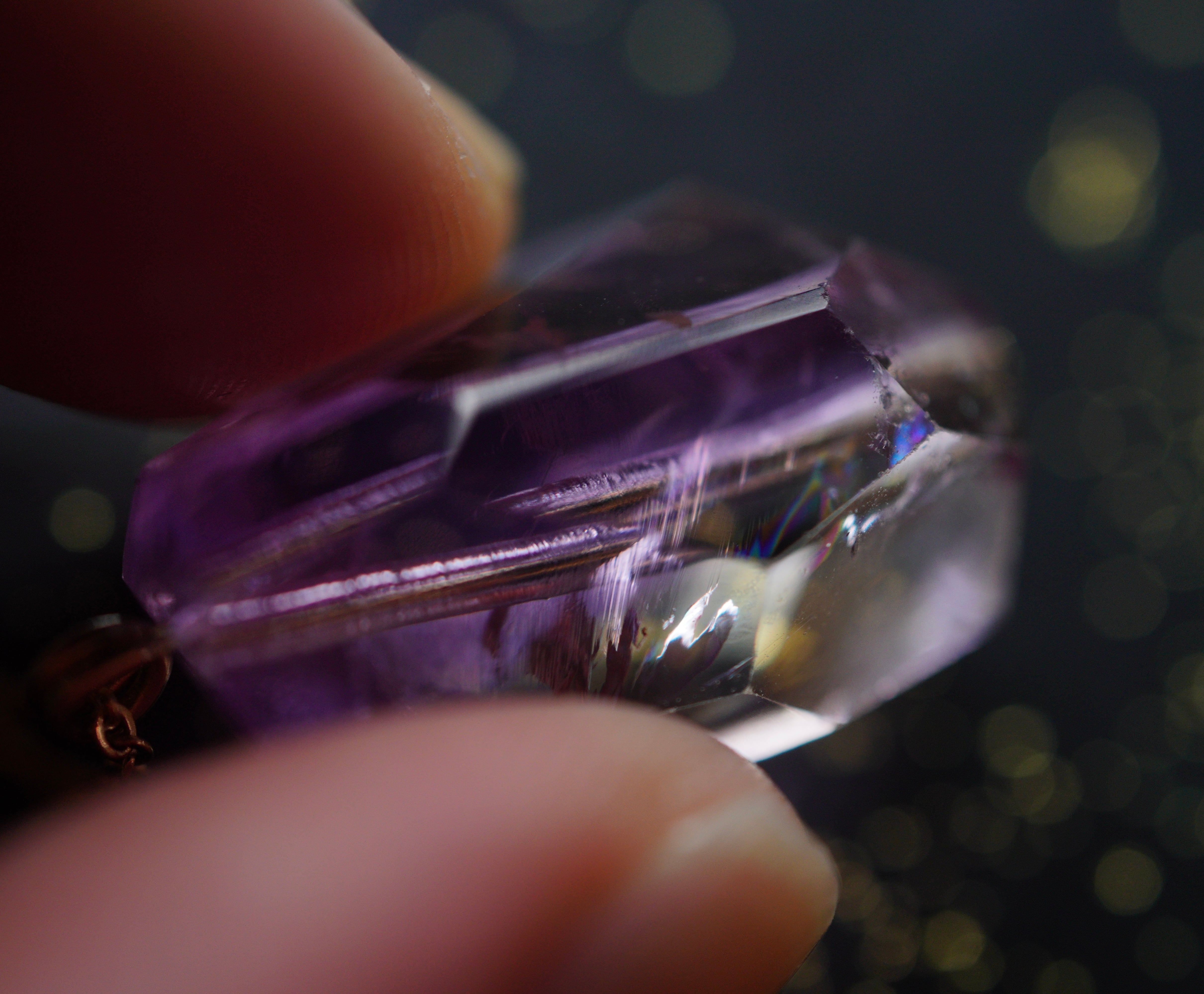 アメジストの中にほんのり光る虹色がとても美しいです。